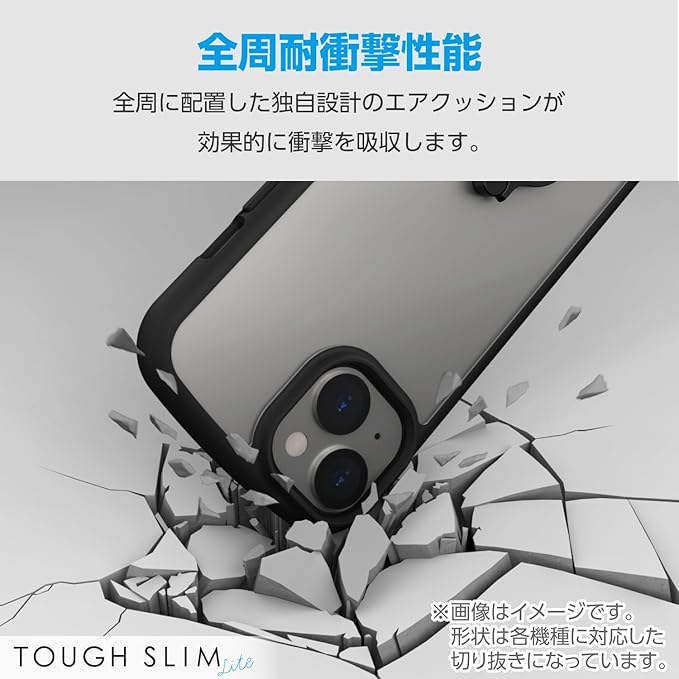 ■全周に配置した独自設計のエアークッションが衝撃を吸収し、背面には高硬度のポリカーボネートを採用した、TOUGH SLIM LITEリング付きケースです。