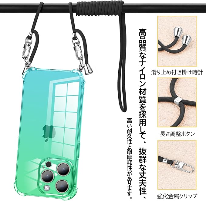 【対応機種】対応Google Pixel 7 Pro専用デザインです。【色落ちしない】グラデーションが美しい2色のTPUケースです。色の鮮明さが長く保たれます。本製品は個別に特殊な方法で着色しているため、色の濃淡や模様には個体差があります。また、写真の色と実物の色は、光の加減や画面の色調によって若干異なる場合がございます。【長さ調整可能・使いやすさ】調節可能なロープは両手を放します,可斜めがけ、可肩掛け、ショルダーバッグは任意の長さまでロープをかけることができます。ショルダーストラップは取り外し可能なので、それを使わなくても簡易的なスマホケースとして使用することができます。外出、登山、買い物、自撮り、電車内の時など日常生活からできるスマホ紛失・落下防止できるスマホネックストラップリングで両手を自由にし楽な日常ができます。作業、旅行、出張、ショピング、散歩、コンサート、パーティーに最適です。手を離しても、携帯電話を携帯できます。【機能】軽量なのに丈夫!四隅に衝撃吸収クッションを装着。ケースの縁が高く設計されて、スクリーンやカメラレンズが擦り傷からスマホを保護します。装着状態でもコネクターや音量調節、電源ボタンの操作が可能、ワイヤレス充電に対応しておりケースを外さずにでも充電が可能。(純正のライトニングケーブルのみ確認済み)【あなたの毎日と、色を変える】まるでおしゃれなアクセサリーのように、あなたの毎日のファッションと気分に合わせてお選びいただけます。いろいろな色の携帯と簡単にマッチできます。