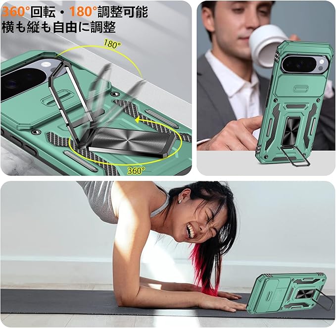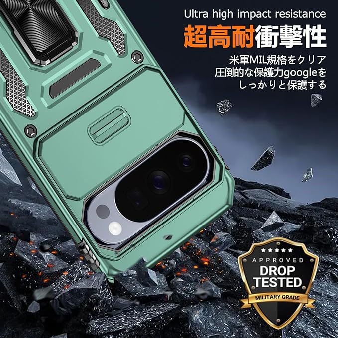 PNEWQNE 対応Google Pixel 10 Pro XL 用のケース リング付き 衝撃吸収 耐衝撃 スタンド機能 米軍MIL規格 グーグル ピクセル10 pro xl 用のケース 全面保護 360 回転 滑り落ちにくい 人気 おしゃれ 携帯カバー ライトグリーン WY100-37