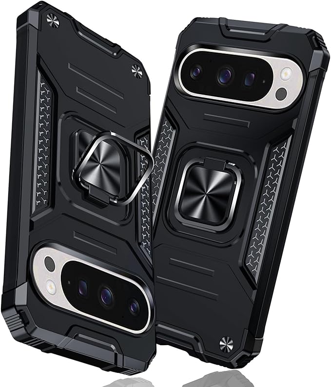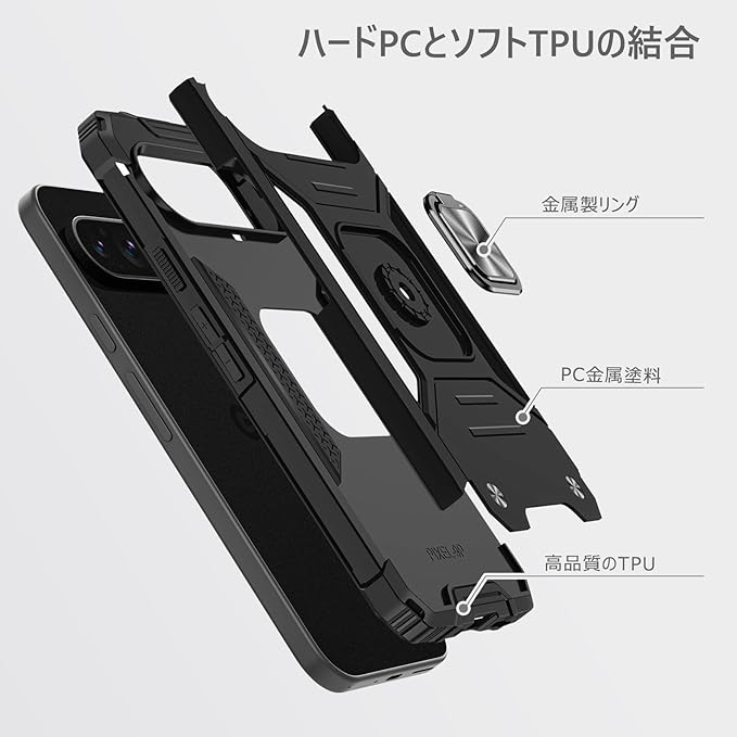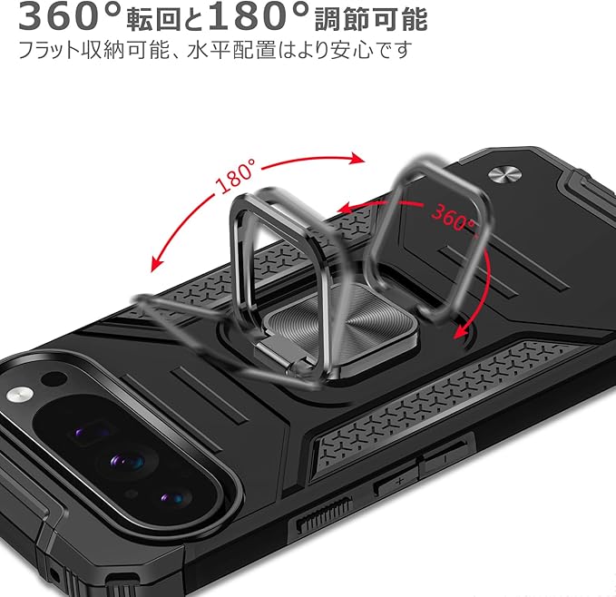 Google Pixel 9 Pro/Pixel 9 用のケース リング 衝撃吸収 耐衝撃 TPU+PCバンパー 二重構造 米軍MIL規格 全面保護 滑り防止 車載ホルダー対応 擦り傷防止 滑り止め 軽量 薄型 グーグル ピクセル 9/9 pro 用のカバー 6.3インチ 指紋防止 耐久 おしゃれ 人気 携帯カバー 黒 MZ64-156