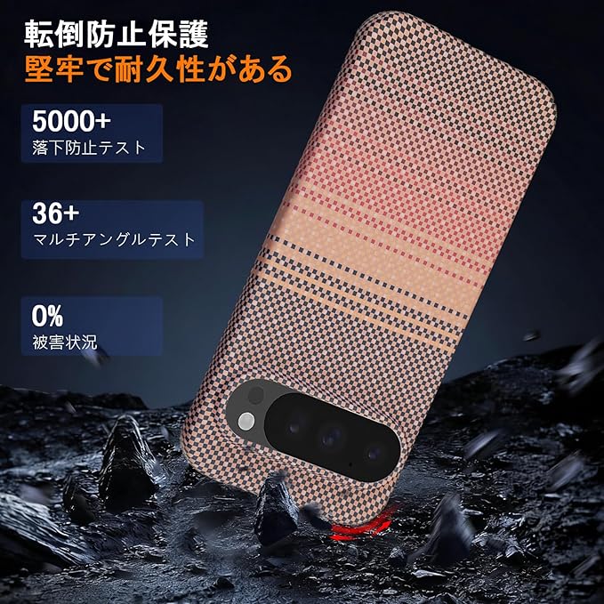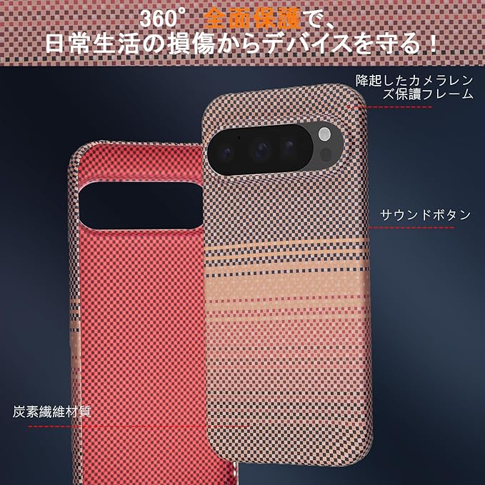 【Moilyo】Google Pixel 9/Pixel 9 Pro用 ケース アラミド繊維製 極薄・軽量型 耐衝撃 グーグル ピクセル9/ピクセル9 Pro 用 スマホカバー 指紋防止 カーボン調 耐久 全面保護ケース pixel9/9proカバー(Sunset Gold)