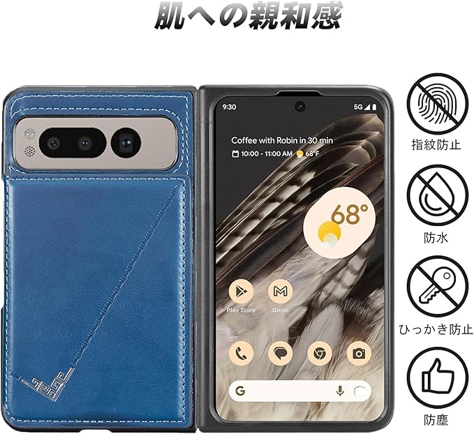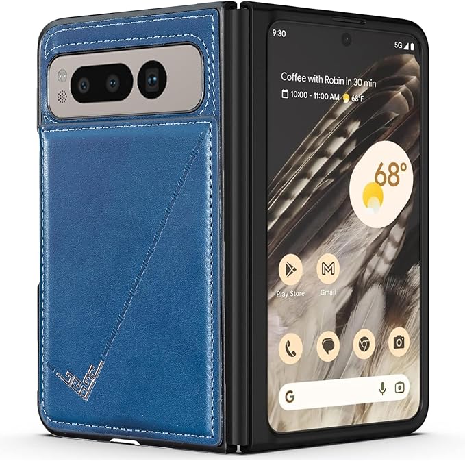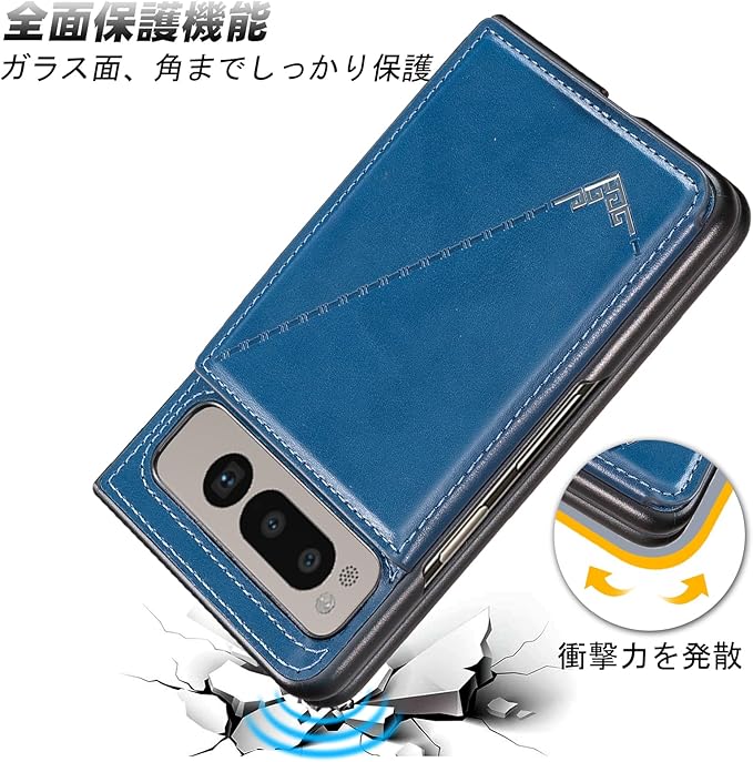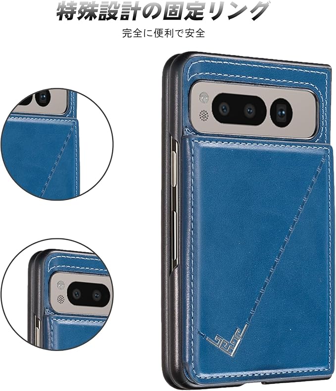 【 Antimam 】背面カード 手帳型ケース 対応 Google Pixel fold スマホバックカバー ( ネイビーブルー )手作り お洒落シンプル 軽量 耐久性 カード収納 スタンド機能付き 財布型 落下防止 グーグル ピクセル フォールド スマホ ケースPixel fold 5g BLUE