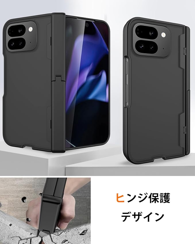 NINKI コンパチブル Google 10 Pro Fold 交換用ケース マットPC ヒンジ保護 米軍MIL規格 折り畳み式 スクリーンフィルム一体型 すり傷防止 ワイヤレス充電でき グーグル 10プロ フォールド 用カバー(ブラック)