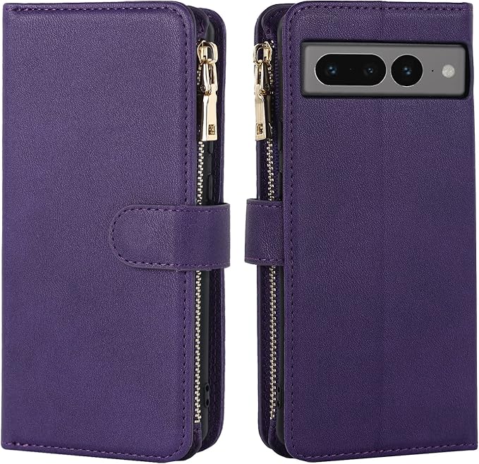 Eastwave for Google Pixel 7 Pro ケース for Pixel7 Pro 縄掛けケース 手帳型 Pixel 7pro 財布型 ICカード コインポケット ストラップ付き カード 収納 小銭入れ ファスナーポケット付き PUレザー 6色 パープル