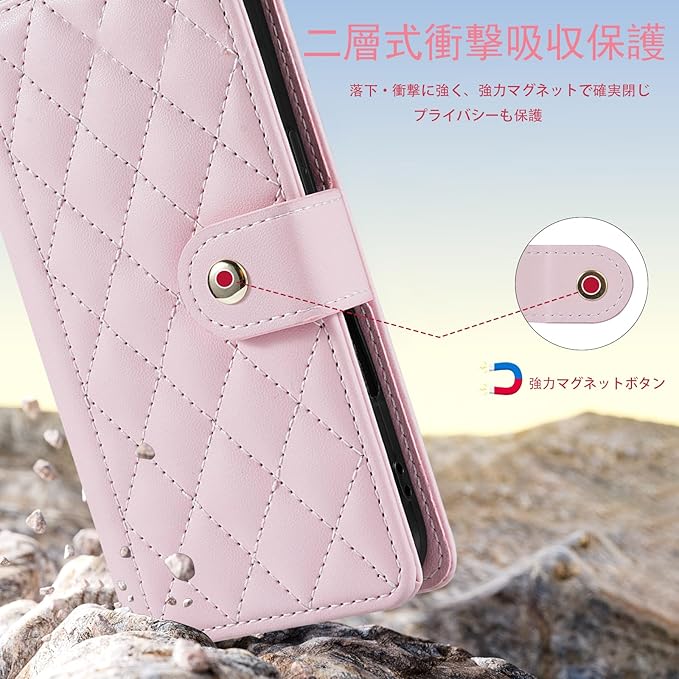 用のGoogle Pixel 9/ 9Pro ケース 手帳型 財布型 マグネット開閉式 カード 3 枚収納&スタンド機能付き 画面とレンズの全面保護 PU レザー 菱形デザイン (ストラップ付属) (ピンク)