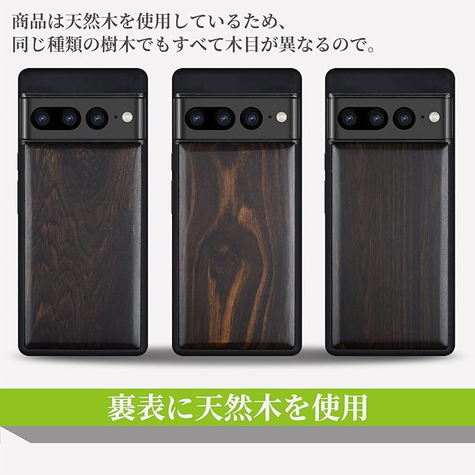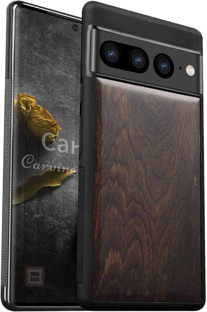 Carveit 木製 ケース 対応 Google Pixel 7Proケース, 合成木+TPUゴム二層構造, グーグル-ピクセル7Pro(6.7インチ)ウッドカバー (黒い木-白木スタイル)