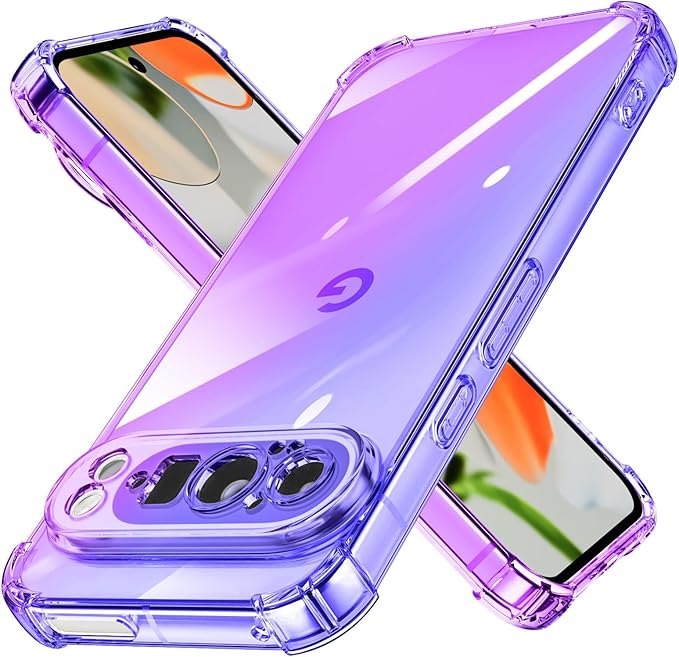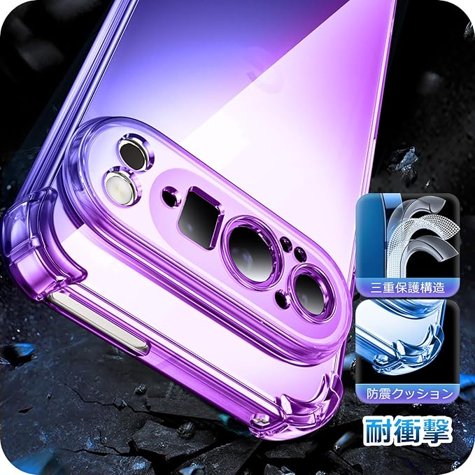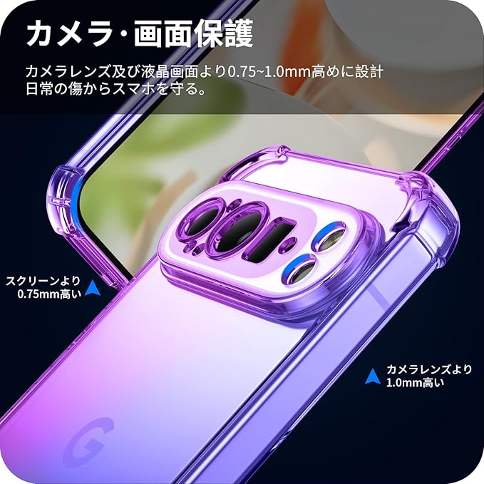 Google Pixel 9 PRO XL 用 ケース クリア 耐衝撃 TPU 透明 Pixel 9PRO XL 対応 スリム 薄型 指紋防止 米軍MIL規格取得 衝撃吸収 滑り止め カメラ保護 ワイヤレス充電対応 おしゃれ 黄変防止 防塵 紫+青 D543-pixel 9pxl-02