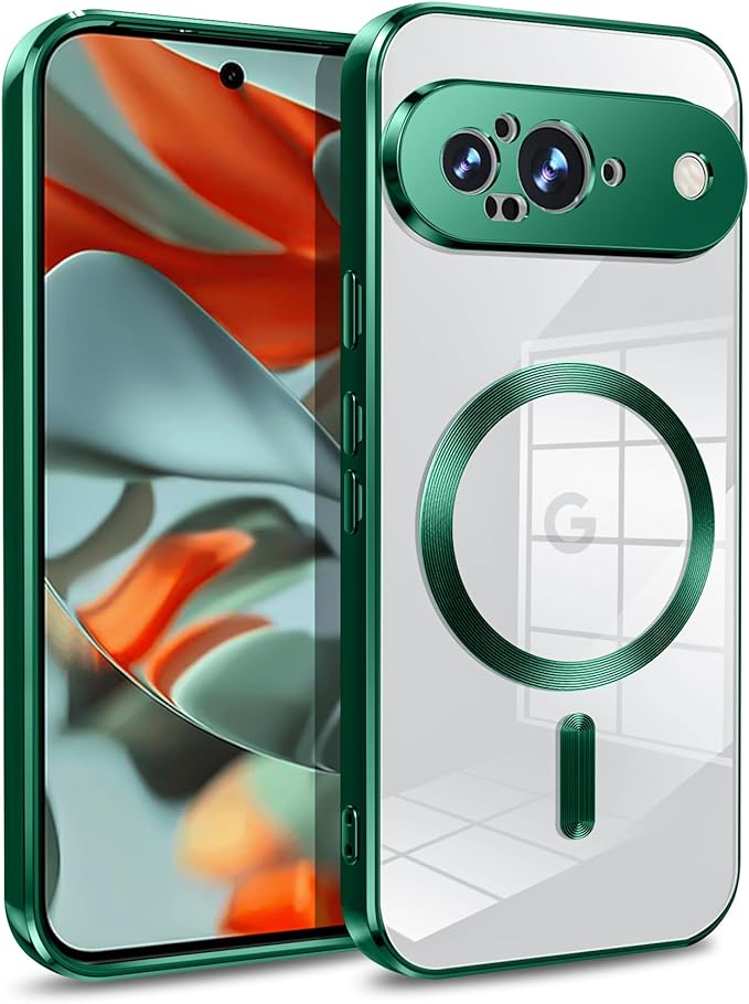 Google Pixel 9 用ケース Magnetic対応 ワイヤレス充電 軽薄型 TPU ソフト グーグル ピクセル 9 用スマホケース マグネット搭載 耐衝撃 米軍MIL規格取得 黄変防止 耐久性 ストラップ穴付き おしゃれ 携帯カバー 緑 D77-105