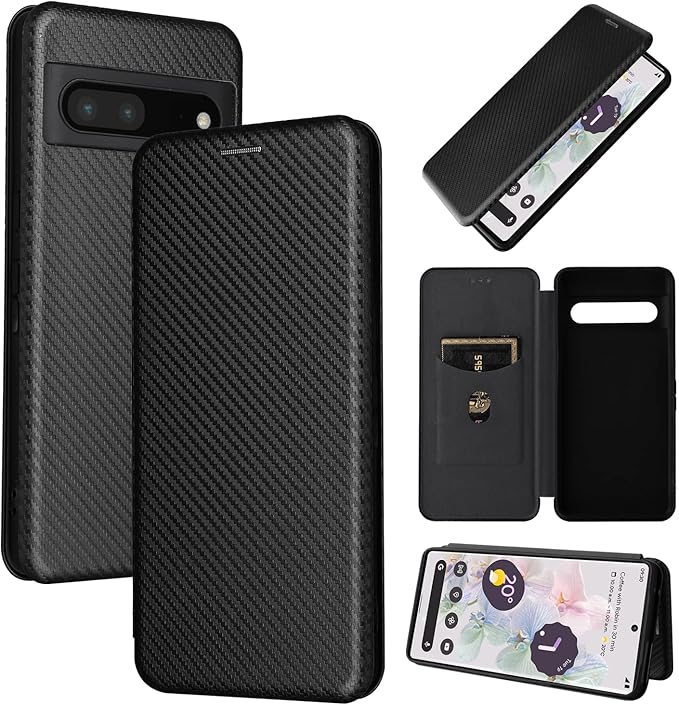 Pelanty for Pixel 8 Pro ケース 手帳型 炭素繊維調 for Google Pixel8 Pro 携帯カバー 背面 軽量 薄型 財布型 カード収納 グーグル ピクセル8pro スマホケース マグネット ストラップ付き 耐衝撃 全面保護-ブラック