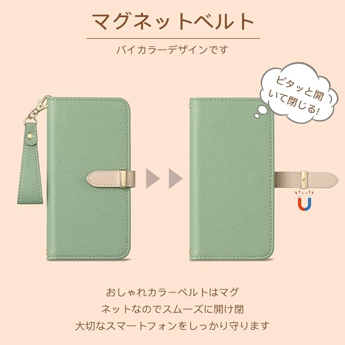 【マグネットベルトがオト】大人可愛い人気の細ベルトはスマホケースの内側と同じ革を使用しており、柔らかくてオシャレなベルトです;片手操作に特別に設計されていますの可愛いマグネットベルトがオト手帳型カバー、手触りが滑らかで傷が付きにくく、カラーマッチングも進んで満足