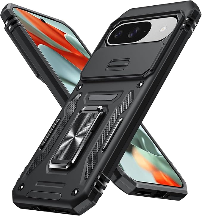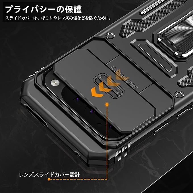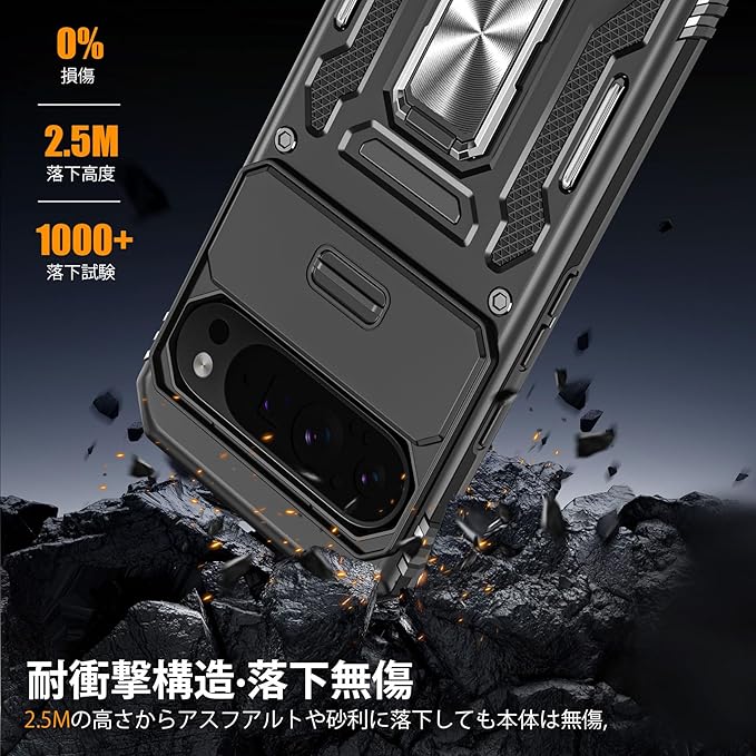 Google Pixel 9 Pro 用ケース/Google Pixel 9 用ケース リング付き 耐衝撃 レンズ保護 TPU+PC 二重構造 バンパー 車載ホルダー対応 360 回転 スタンド機能 スマホケース グーグル ピクセル 9 pro/9用ケース 一体型 携帯カバー 黒 J12-21