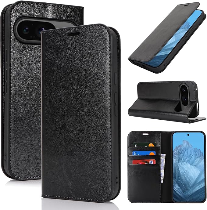 Pelanty for Pixel 9 ケース手帳型 for Google Pixel9 Pro 携帯カバー 手作り 本革レザー 財布型カバー カード収納 スタンド機能 耐衝撃 マグネット無し 開閉ベルト無し グーグル ピクセル9/9pro スマホケース【選べる4色】ブラック