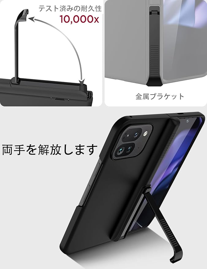 【隠し金属製スタンド|マットな質感】対応Pixel 9 Fold スタンド, 隠しブラケットが付属しており、そっと開くことで携帯電話ホルダーに変えることができ、不要なときは隠すことができます。横方向と縦方向のスタンド,あなたは好きな角度を自由に選ぶことができます。ハードPCを使用して作られており、良好な耐圧性と耐摩耗性を持っています。マットな質感,表面が滑らかであるか,肌にやさしい感触,汚れ防止, 指紋防止,耐汚れ,擦り傷防止, 清掃が容易で、携帯電話ケースを常に清潔で美しく保つことができます。