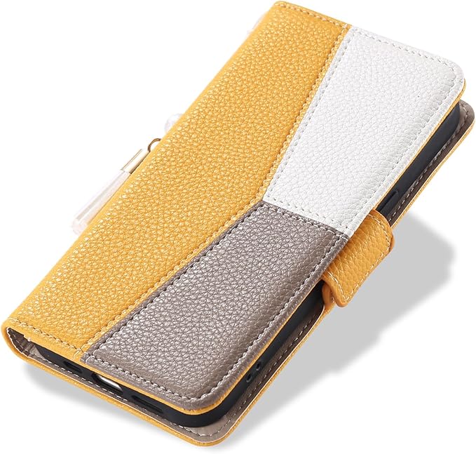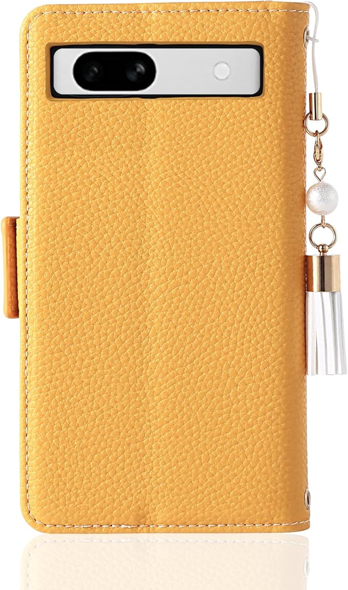 Google Pixel 7A レザーケース 個性的なデザイン シュリンク革 Google Pixel 7A 携帯カバー 財布型 真珠チャーム付き 綺麗 ピクセル7A 手帳型スマホカバー マグネット付き かわいい 上質 グーグルピクセル7A カバーケース 耐衝撃 横置きスタンド 保護ケース スマートフォンケース ソフトカバー 全面保護 便利 カードホルダー イエローとグレー