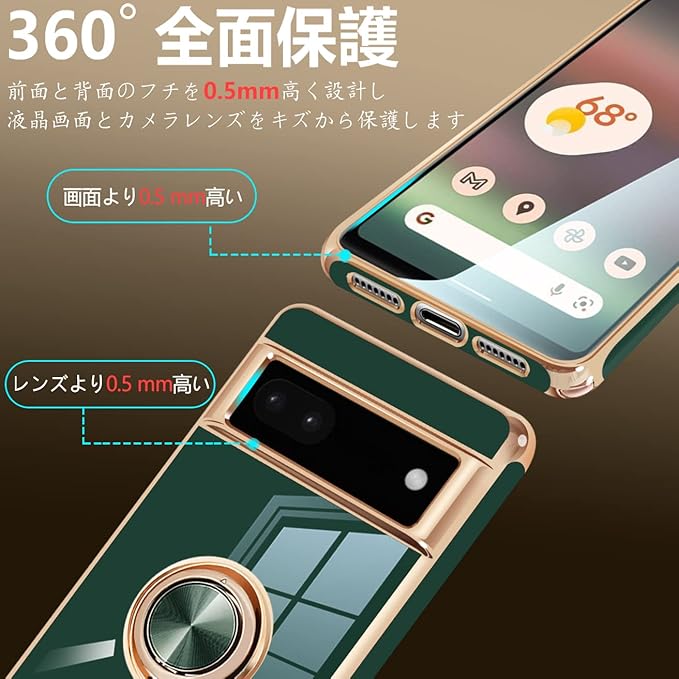 【高品質のTPU素材】に適合するGoogle Pixel 6A 用のケース リング スマートフォン専用保護カバー 。高弾性TPU素材を採用、日常生活での消耗に耐えしっかり保護できるので、四角を強化することで、落下や衝撃による損傷を軽減します。 画面とカメラを保護するために上げられたベゼル。落下の衝撃から重要なスマホを守ってくれます。安定することで、スマホの操作性も優秀です。
