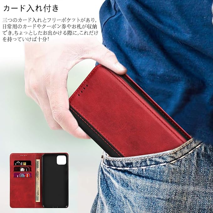 Google pixel 4 ケース pixel4 ケース グーグル pixel4 カバー グーグルpixel4 スマホケース ピクセル4 手帳型 適用 case 【iCovercase】 内蔵マグネット 携帯カバー カードポケット スタンド機能 シンプル カバー クラシック 大人 落ち着いた色 TPUケース付き 耐衝撃 2色組合せ レトロ レッド