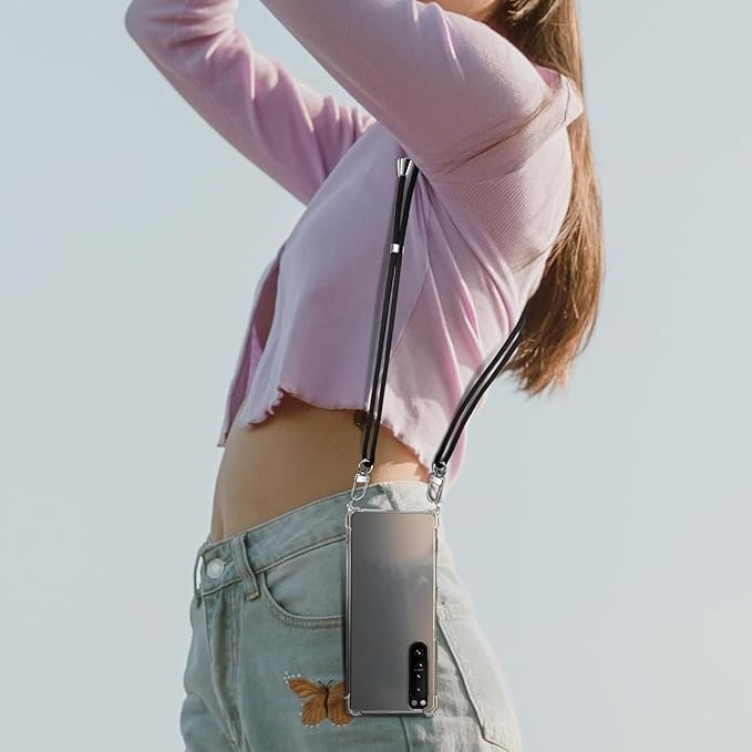 Google Pixel 6 Pro ケース ショルダー クリア Pixel 6 Pro カバー 耐衝撃 TPU 肩がけ 首掛け 紐付き 薄型 縄掛け ケース 斜めかけケース 軽量 取り外し可能 調節可能な ショルダー 肩がけ 首掛け 紐付き 透明+縄掛け-ブラック 08009-PX6pro-03