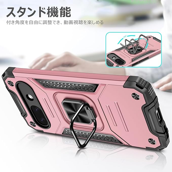 Google Pixel 9A 用ケース リング 衝撃吸収 耐衝撃 TPU+PCバンパー 二重構造 米軍MIL規格 全面保護カバー 滑り防止 車載ホルダー対応 擦り傷防止 滑り止め 軽量 薄型 ピクセル9a 用カバー 6.3インチ 指紋防止 耐久 おしゃれ 人気 携帯カバー ピンク MZ91-66