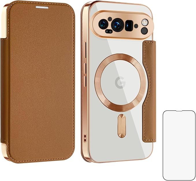 【REHOOF】google pixel9 Pro 用 ケース 手帳型 magsafe対応 背面 透明 クリア 財布型 マグセーフ 手帳 カード収納 ワイヤレス充電対応 カード入れ PU革 レザー Pixel 9 Pro スマホケース おしゃれ 軽量 薄型 防塵 耐衝撃 全面保護 スマホカバー(ブラウン)