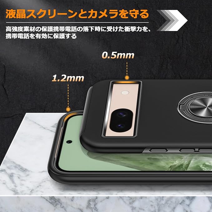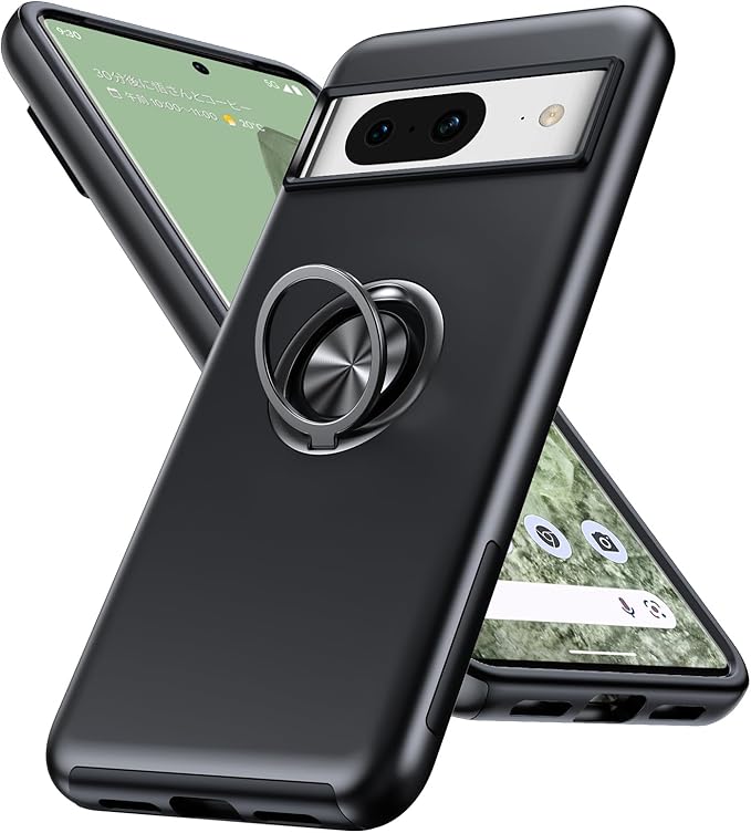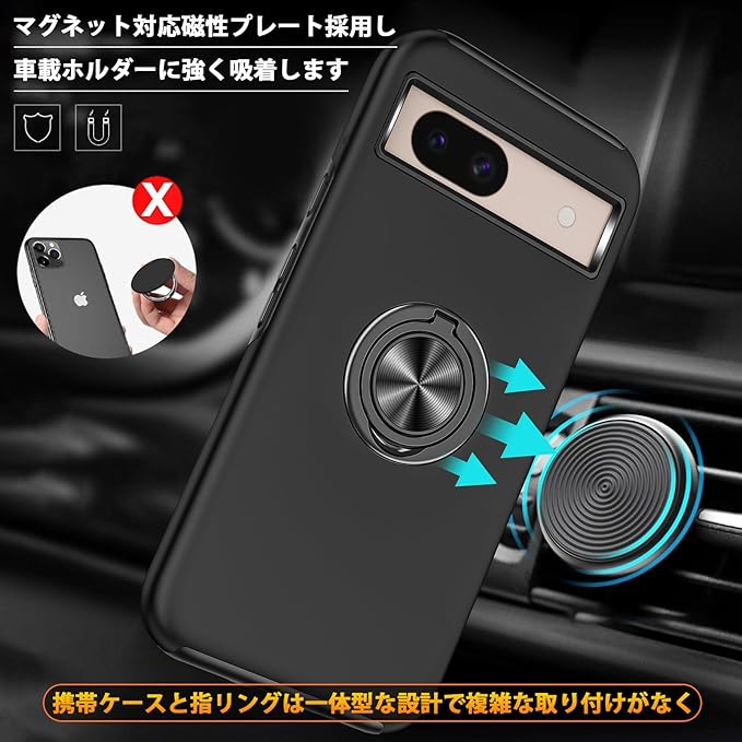 対応 Google Pixel 8 用の ケース リング 耐衝撃 米軍MIL規格取得 TPU+PC 衝撃吸収 カバー レンズ保護 リングつき 指紋防止 360 回転 車載ホルダー対応 スタンド機能 防塵 薄型 落下防止 擦り傷防止携帯電話カバー 黒C85-APixel8-01