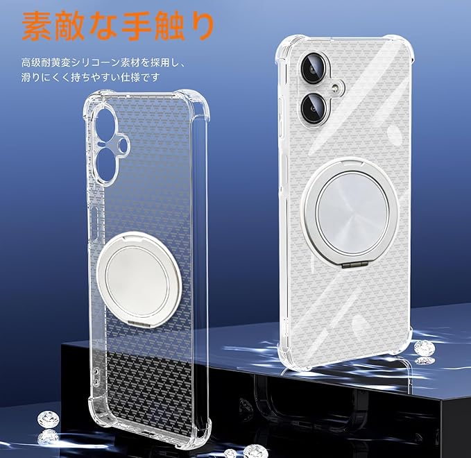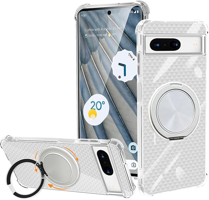 Google Pixel 7a ケース TPU MagSafe対応 360度回転スタンド 縦横両対応 透明 ピクセル7A リング付き カバー 米軍規格 耐衝撃 マグセーフ 防指紋 リング マグネット搭載 カメラ保護 マグネット搭載 軽量 ストラップホール付き・クリア 滑り止め設計三角形パターン pixel7a スマホケース