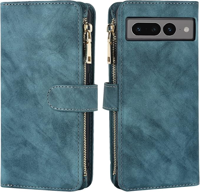 Eastwave for Google Pixel 7 Pro ケース for Pixel7 Pro 縄掛けケース 手帳型 Pixel 7pro 財布型 ICカード コインポケット ストラップ付き カード 収納 小銭入れ ファスナーポケット付き PUレザー 6色 ブルー