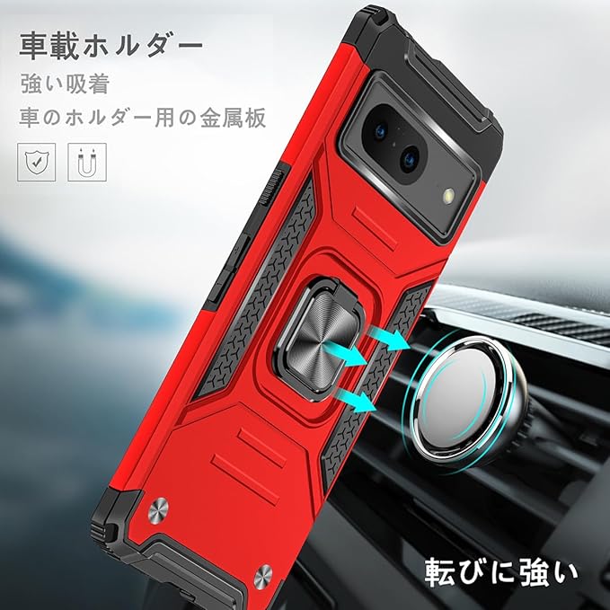 JSCOMYAP Google Pixel 8 用ケース + 强化ガラス フィルム リング付き スマホケース スタンド機能 携帯ケース 耐衝撃 横置き機能 Case Cover グーグルピクセル8 ぐーくるぴくせる8 ぴくせる8 背面 カバー メンズ 5.8インチ(赤)