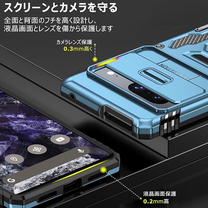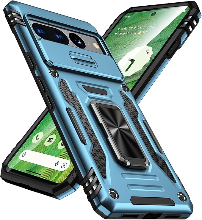 PNEWQNE Google Pixel 7 Pro 兼用ケース リング付き 衝撃吸収 耐衝撃 スタンド機能 米軍MIL規格 グーグル ピクセル 7 pro 兼用ケース 全面保護 360 回転 滑り落ちにくい 人気 おしゃれ 携帯カバー ネイビーブルー WY88-179