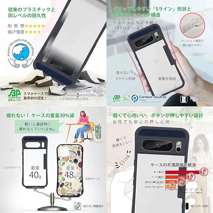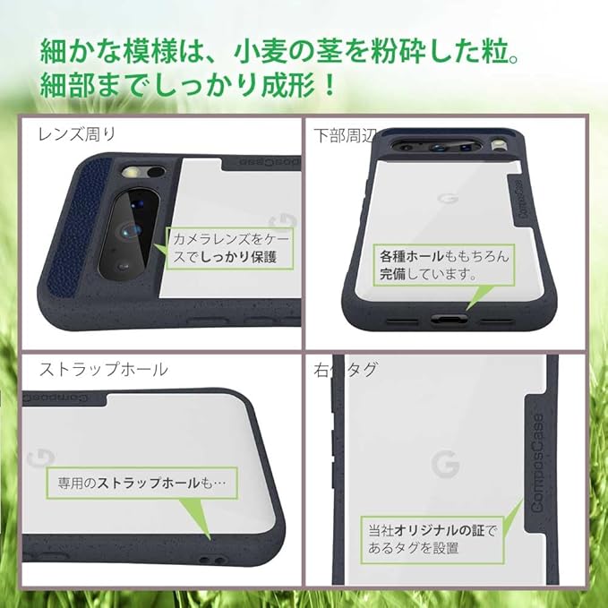 コンポスケース Google Pixel 8 Pro ケース クリア 生分解性 スマホケース スマホショルダー グーグル ピクセル8 プロ カバー ソルトグレー