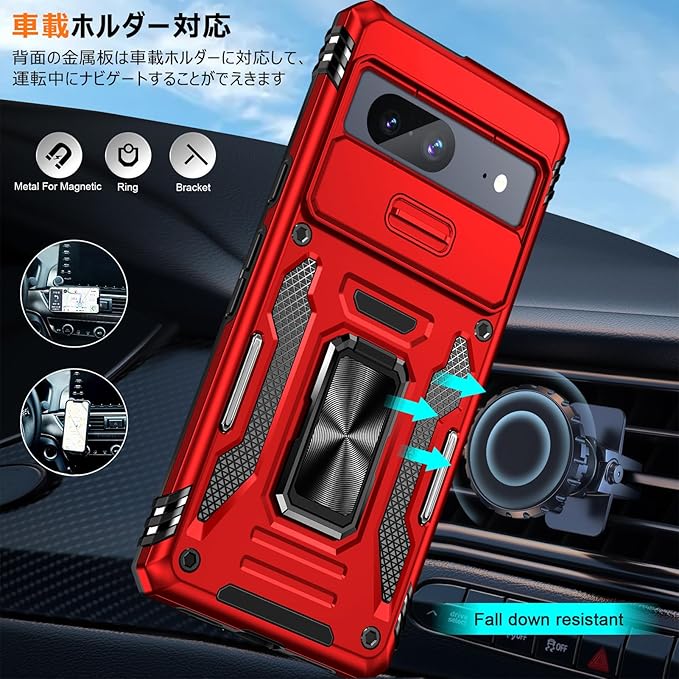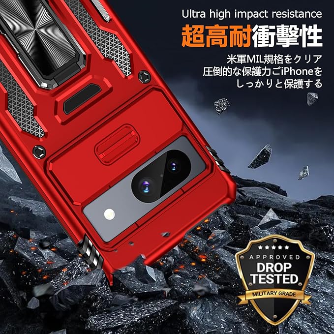 PNEWQNE Google Pixel 7 Pro 兼用ケース リング付き 衝撃吸収 耐衝撃 スタンド機能 米軍MIL規格 グーグル ピクセル 7 pro 兼用ケース 全面保護 360 回転 滑り落ちにくい 人気 おしゃれ 携帯カバー 赤 WY88-178