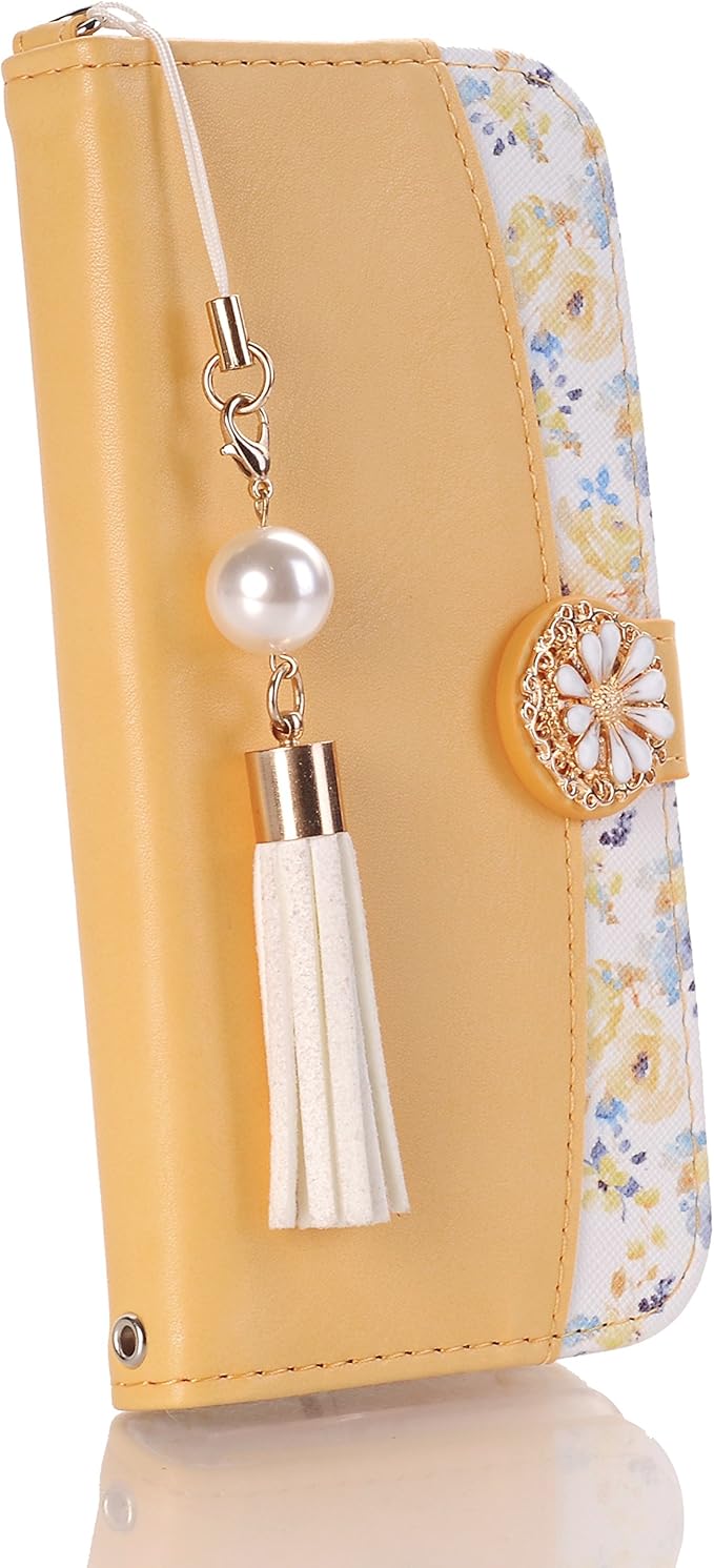 Google Pixel 6 Pro ケース 6.71inch手帳型 グーグル ピクセル 6プロケース カバー 6.7インチ手帳型ケース かわいい【YYK】 スマホケース 可愛いタッセル ストラップ付き マグネット式 財布型 横置きスタンド機能付き カードポケット付き スマートフォンケース 耐衝撃 保護ケース 綺麗 少女 レディース用 おしゃれ 全面保護 (Google Pixel 6 Pro, G5-黄色い)
