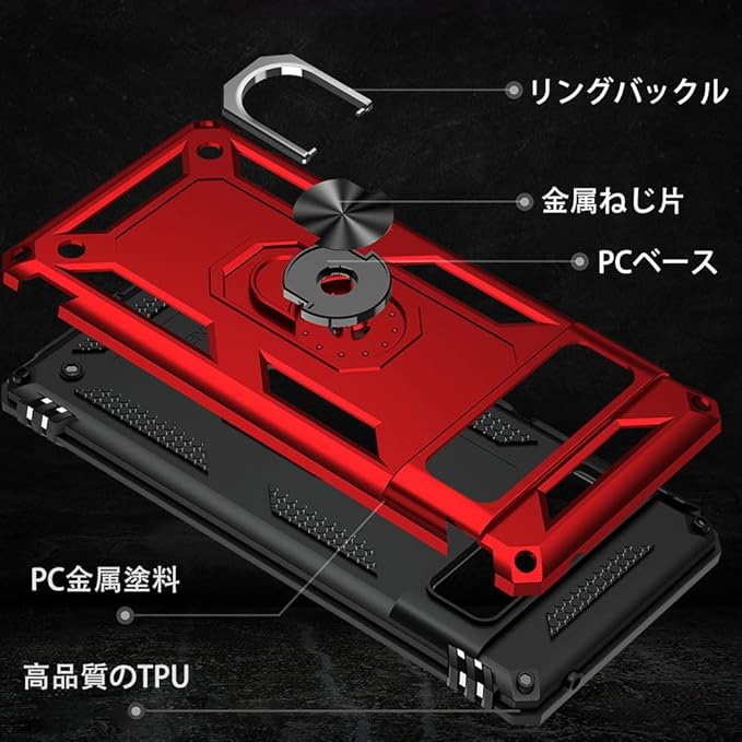 Google Pixel 7 Pro 用ケース リング 耐衝撃 衝撃吸収 傷防止 全面保護 カメラ保護 スタンド付き TPU+PCバンパー 指紋防止対策 グーグルピクセル7 pro 用ケース 6.7インチ 二重構造 360度回転 防塵 車載ホルダー対応 黄変防止 米軍MIL規格 軽量 薄型 耐傷性 滑り止め 人気 携帯カバー 赤 MZ61-119